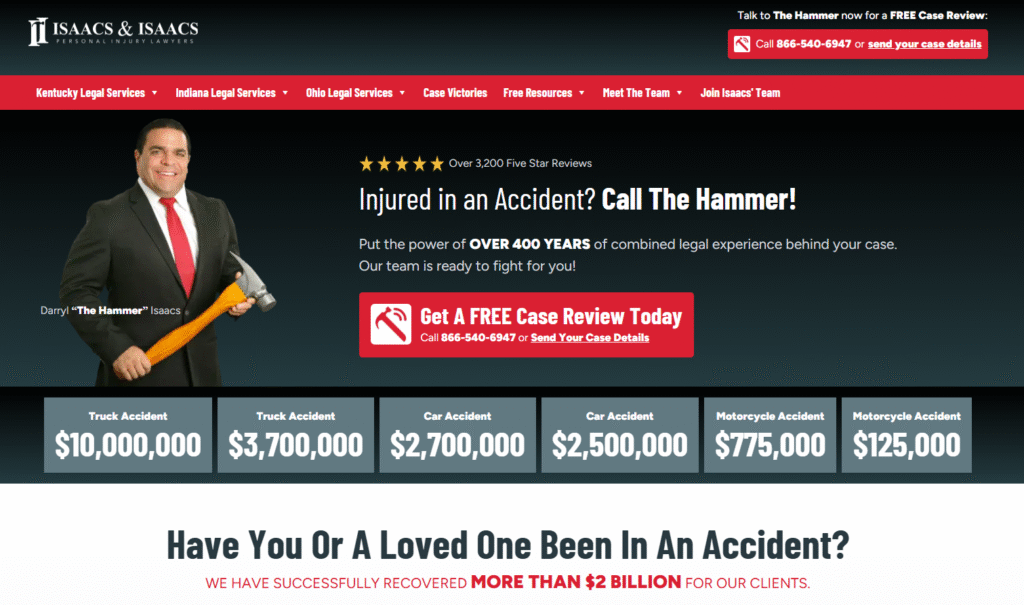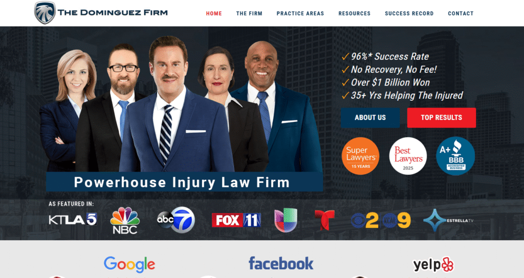 Results: Top ranking spots on Google for the most competitive keywords in the personal injury market.